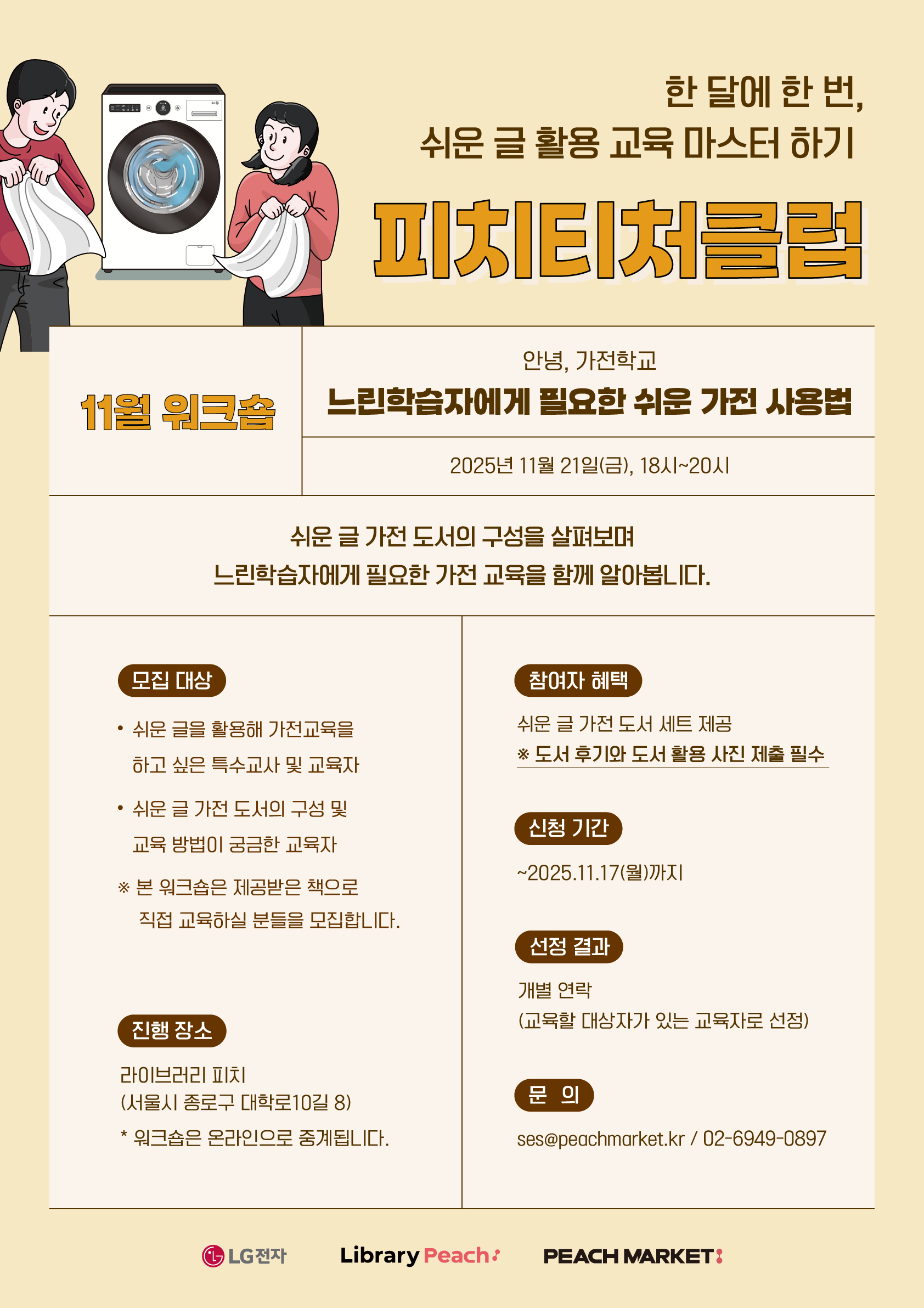 느린학습자에게 필요한 쉬운 가전 사용법! 피치티처클럽 워크숍에서 함께 배워 봐요✨